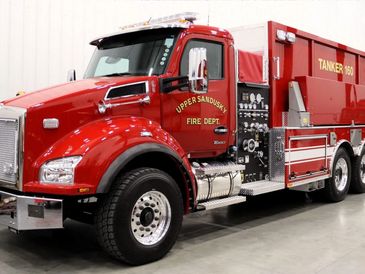 Upper Sandusky Ohio FD is operating this US Fire Apparatus 3000 gallon tanker with a 1500 gallon Hale Midship pump. 3000 gallon portable tank.
